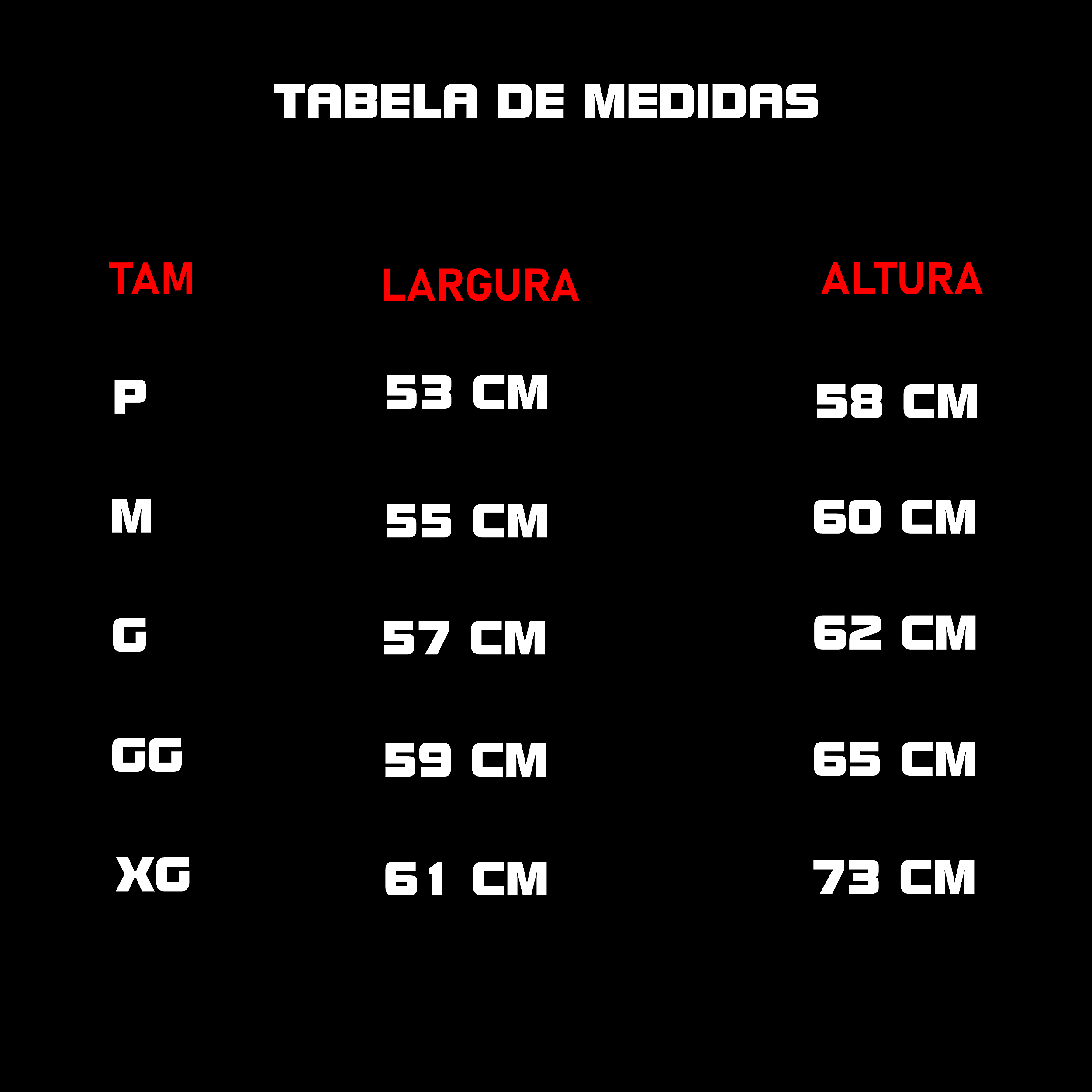 TAM LARGURA ALTURA